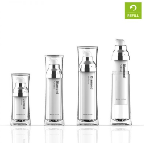 Роскошные вакуумные диспенсеры Diamond Airless серии "рефилл" - сменные блоки с помпой встают в наружнюю часть упаковки с красивым дном в виде бриллианта. Упаковка подойдет для косметики люксового сегмента для средств по уходу за лицом. Минимальная партия партия заказа от 5 000 штук.